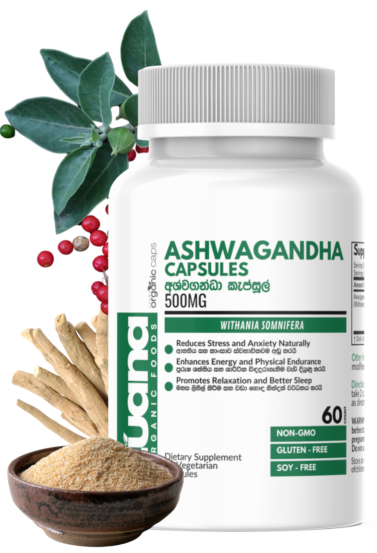 - Made with 100% organic Ashwagandha (100% කාබනික ආශ්වගන්ධා වලින් සාදා ඇත)